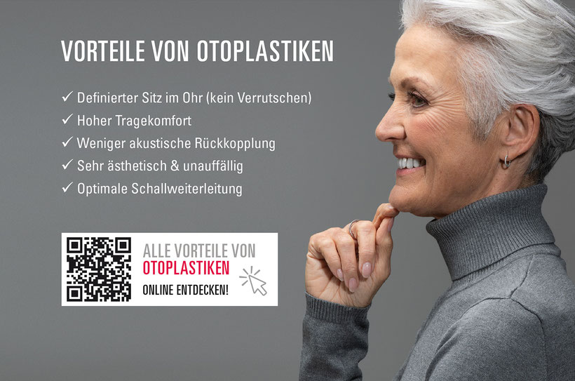 Vorteile maßgefertigte Otoplastiken für Hörgeräte, bieten optimalen Tragekomfort und Klangqualität, da sie genau auf die Ohrform abgestimmt sind. Sie sind leicht, sicher im Ohr sitzend, und können individuell in Farbe und Design angepasst werden.