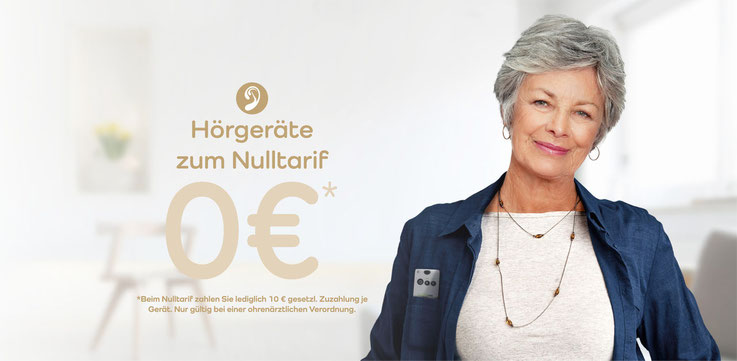 Bei uns erhalten Sie Hörgeräte zum Nulltarif! Beim Nulltarif zahlen Sie lediglich 10€ gesetzliche Zuzahlung. Dazu benötigen Sie eine ohrenärztliche Verordnung vom